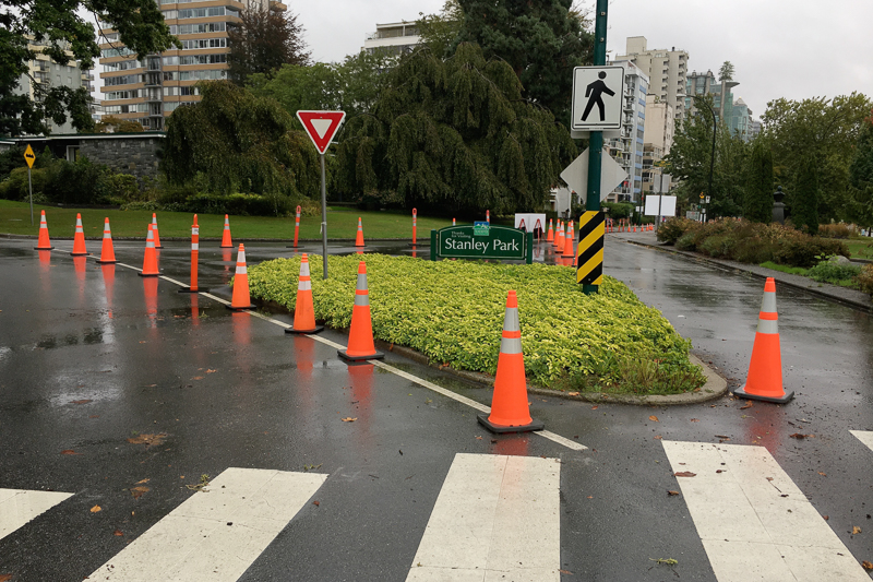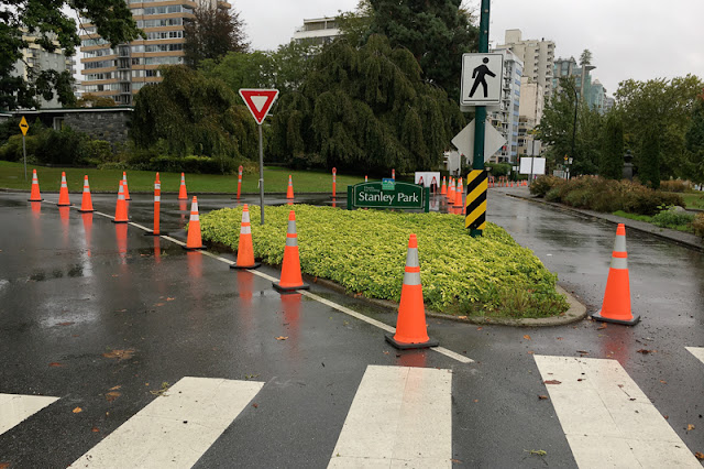 When walking alone I decided to 'notice what I notice'. I am known for noticing traffic cones and small things. I cannot be the only person to think that the cones of Vancouver have been renamed for the pandemic. The other thing that I notice in Canada is deciduous trees; mainly because there are so few of them. I miss them when away from England. They are mostly found only in parks and gardens. I enjoy the changes of autumn. The beauty of a single leaf left on the tip of a branch. ![]()